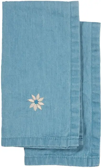 köna kökshanddukar i en mjuk certifierad bomullsdenim prydda med en broderad beige blomma som matchar Eden-serien. Den svala denimfärgen ger både karaktär och en klassisk känsla i köket. Mått: 50x70 cm. Levereras i två-pack med pappgördel. Certifierad bomullsdenim.