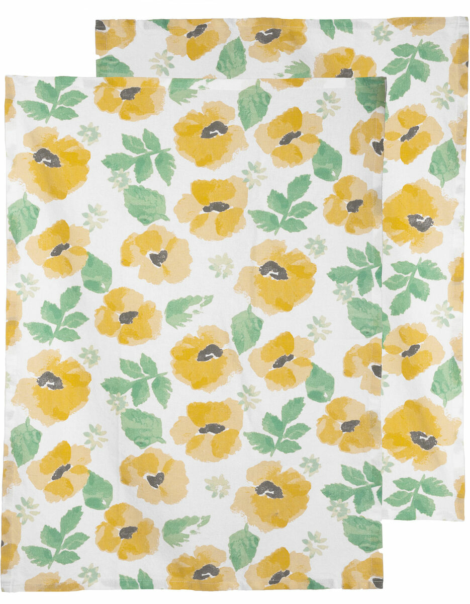 Eden kökshandduk är en vackert mönstrad handduk i tunn,vävd återvunnen bomull (70%) och polyester (30%). Mönstret är noga framtaget med målade blommor i mjuka pasteller som går i gult och beige. En handduk som piffar upp i både kök och badrum. Den torkar fort och är lätt att hänga upp.