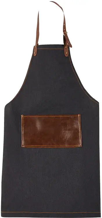 Alla mästerkockar behöver ett förkläde av hög kvalitet i köket. Förklädet Elena i slitstarkt jeanstyg med detaljer i konstläder skyddar dina kläder mot såväl spill som stänk.