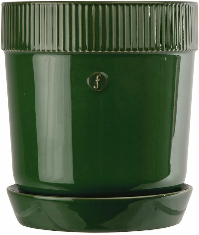 Elise kruka med fat har alla rätt. Den kombinerar designen av färg, form och detaljer med praktiska inslag som dräneringshål och ett fat som går högre upp. Elisa kruka har en mjukt rundad form med enkla raka snitt och är tillverkad i klassiskt stengods. Krukan är dekorerad med ett emblem och Sagaforms karakteristiska rand och har sedan glaserats i tre vackra och naturnära kulörer. En kruka som blir ett varmt inslag i alla hem. Elise finns i två storlekar.