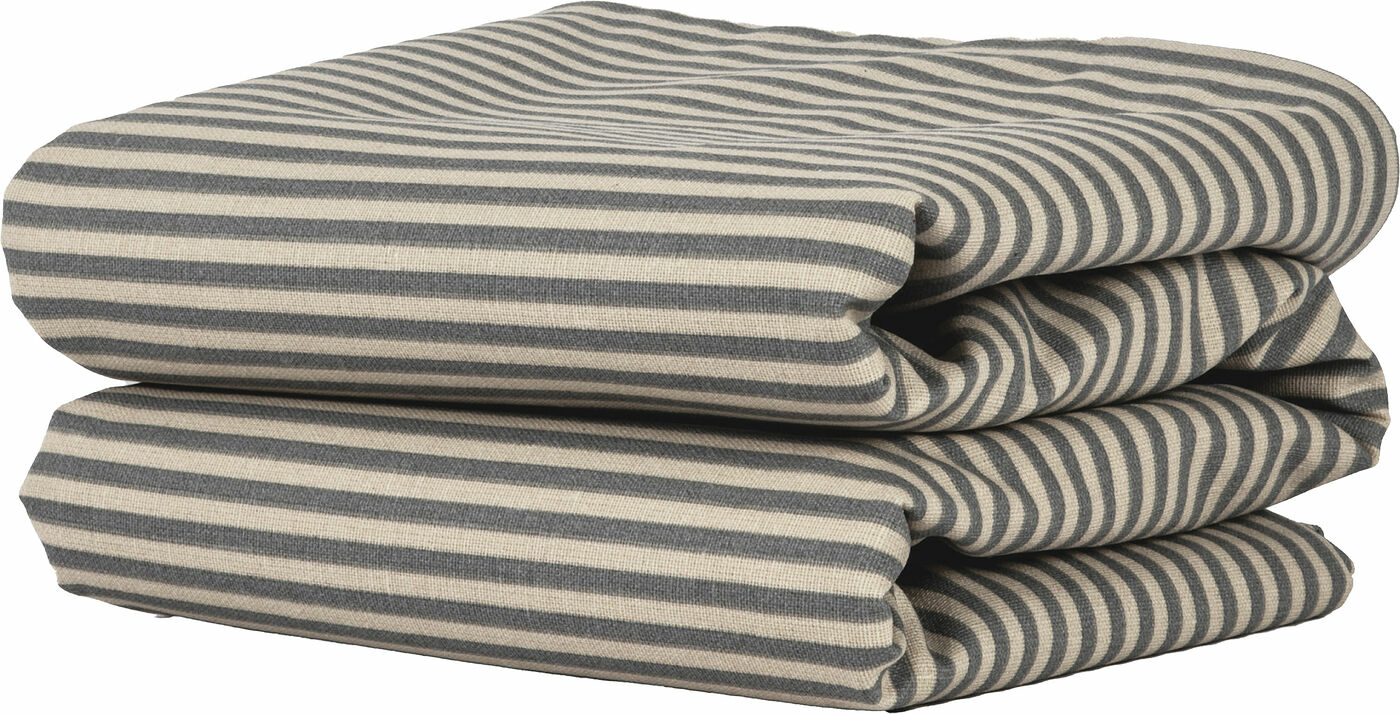 Ella vaxad duk är en klassiskt mönstrad duk med ränder i återvunnen bomull (70%) och polyester (30%). På ytan finns en ”coating” som gör duken vattenavvisande och perfekt att använda både utomhus och inomhus. Ränderna och de naturnära beige tonerna är karakteristiska för Sagaform. Finns i storlek 150x250 cm.