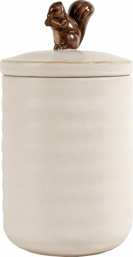Ellen-burken gör sig förträffligt bra i köket, men likaväl i badrummet eller barnrummet. En söt burk som kommer i två naturnära färger, grönt och benvit. Finns i två storlekar där den större burken har en ekorre på locket och den mindre ett ekollon. Tillverkad i stengods.