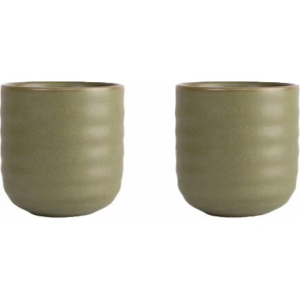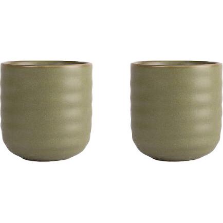 Ellen muggar är framtagna för glöggen men funkar lika bra för espresso eller annat drickbart resten av årets alla dagar. Muggarna har en stilren design med en böljande volang. När mjuka former möter hårt material skapas en spänning och attraktion. Volangen representerar Sagaforms karakteristiska rand. Färgerna är naturnära i beige och grönt. Köps i 2-pack.