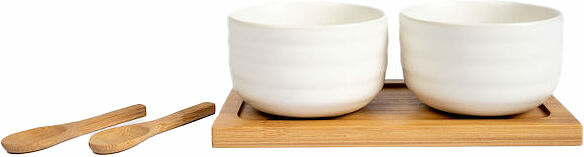 Ellen småskålar kommer som par tillsammans med två skedar på en fin liten bricka i bambu. Tillverkade i stengods i en naturnära beige kulör. Perfekta små skålar för glöggens tillbehör men också för annat resten av årets alla dagar.