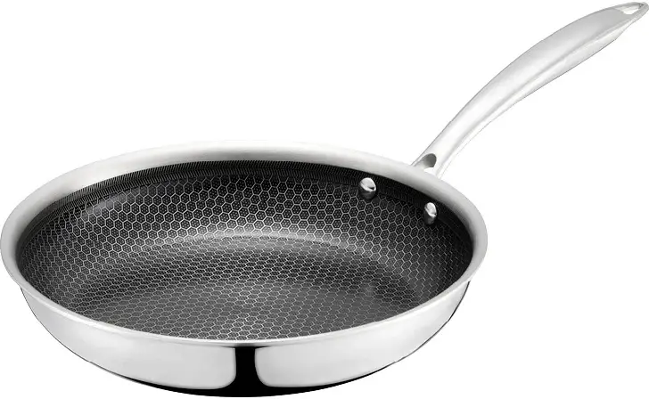 Eminence Stekpanna Ø24cm har en keramisk beläggning helt fri från PFAS-ämnen men med en non-stick-prestanda. Stekpannan är uppbyggd i tre lager (3-Ply) med rostfritt stål och alumnium för en slitstark och hållbar panna med snabb och jämn värmefördelning. HoneyComb-mönster fördelar matfett och olja utmärkt vilket ger en jämnare stekyta.