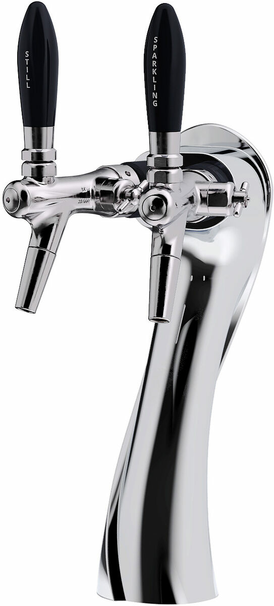 Smäcker kranpelare i tuff kromad design med två tappkranar. Albatross serverar kylt kolsyrat och/eller kylt naturellt vatten och passar utmärkt som inbyggnadskran till bänk eller våra fristående skåp Orion och Halia.