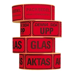Varningsetikett med texten: Etikett OBS! Denna kartong innehåller flera varor.