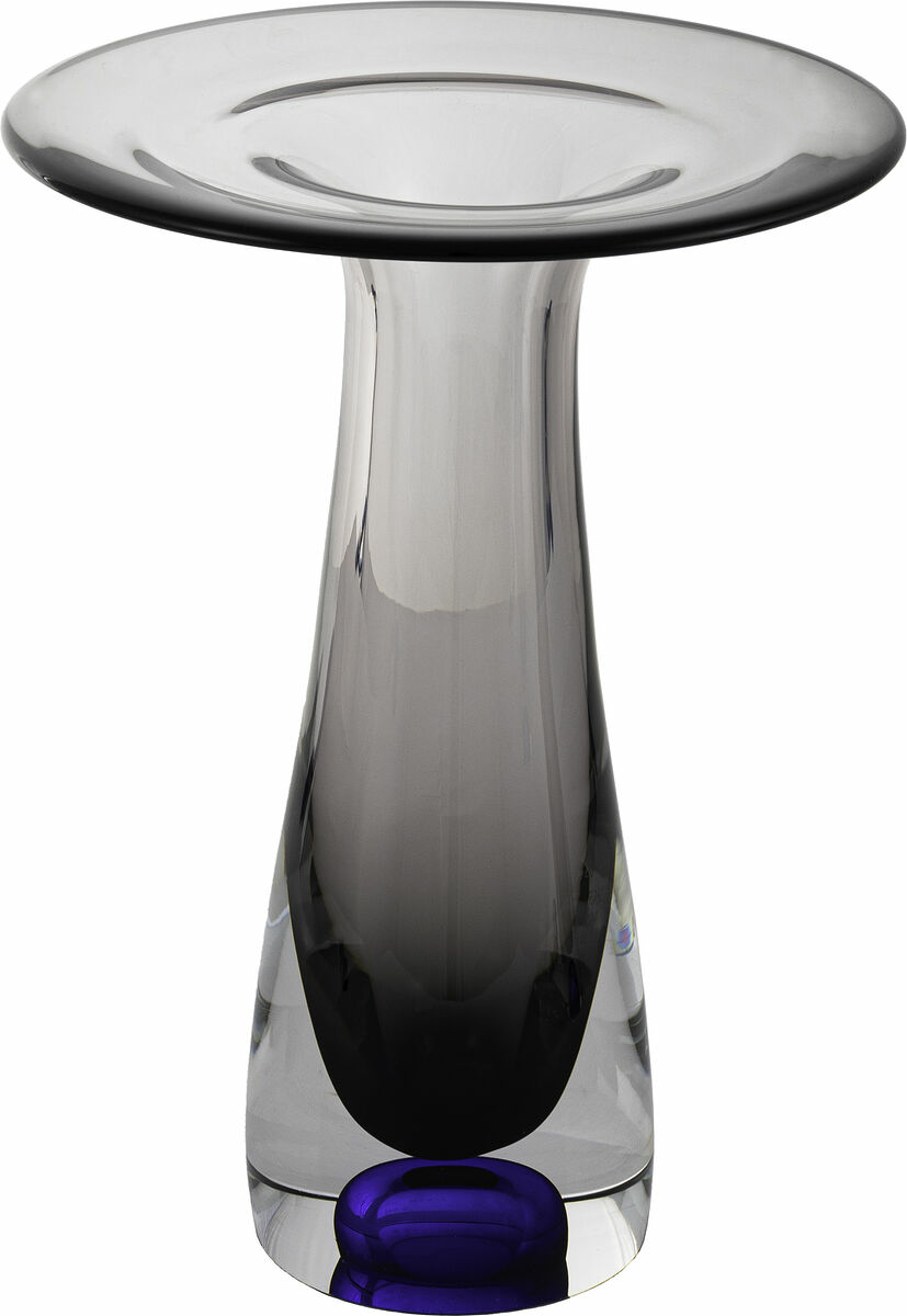 ”Inspirationen till min serie Fado är den portugisiska musiken och ofta med havet och längtan som bärande tema. Fado, en blå kula i glas med ett påklipp av grått glas på glasblåsarpipan är själva fröet till den vasserie jag kallar Fado. Tanken att med ett antal anfång av glas lyfta fram formen och låta den växa till en vas, bärare till en blomma eller ett glasobjekt i sin egen kraft.”