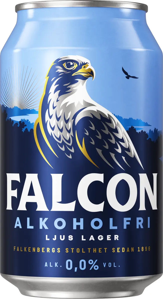 Falcon Alkoholfri 0,0% är en ljus alkoholfri lageröl. Falcon Alkoholfri 0,0% är frisk och fyllig med utvald humle, bryggd på en tradition från 1896. Falcon Alkoholfri 0,0% går väl ihop med korvar, plockmat och salta rätter. Denna alkoholfria öl passar lika utmärkt till smörgåsbord och sällskapliga stunder. Veganvänlig dryck.