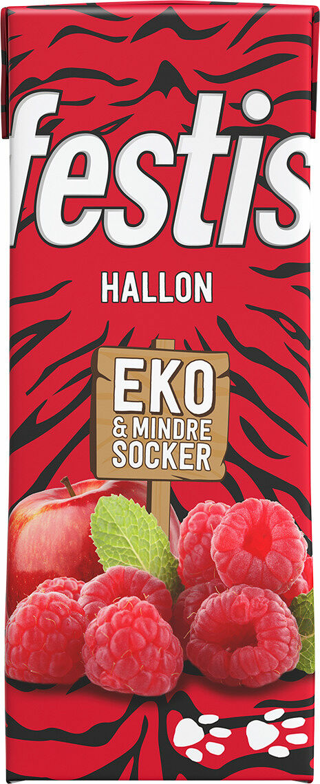 Ingredienser: Vatten, äppeljuice från koncentrat (7%)*, socker*, hallonjuice från koncentrat (0,5%)*, syra (citronsyra), naturlig hallonarom. *Ekologisk ingrediens