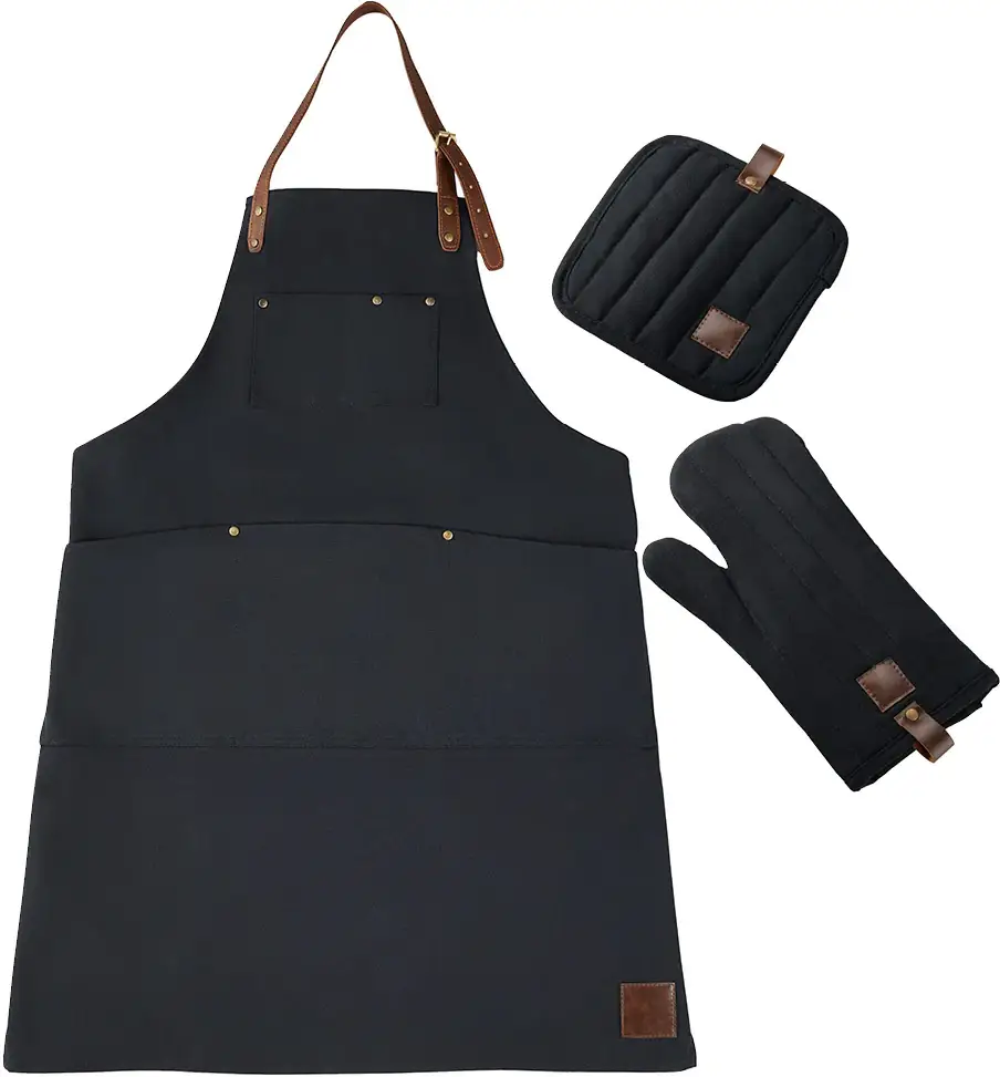 Förhöj din köksstil med vårt förklädessett. Inkluderar ett modernt förkläde, en slitstark grytlapp och en bekväm grytvante. Upplev komfort och elegans i köket med detta praktiska set. Tillverkat i bomull som kan tvättas i maskin på 30 grader. Perfekt present till nära och kära!