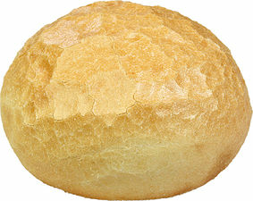 Rund, ljus, slät fralla bakad med vetemjöl.