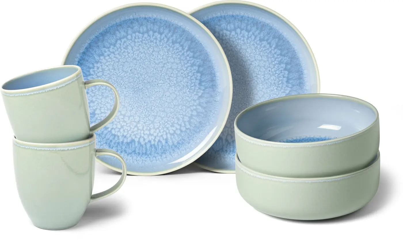 Detta 6-delade frukostset består av två muggar med handtag, två skålar och två frukosttallrikar och kommer att tillföra en gnutta skandinavisk charm till bordet.
