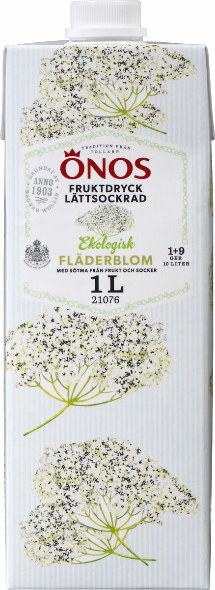 Ekologisk Lättsockrad Fruktdryck Fläder är härligt frisk och fräsch. Varsamt sockrad. Spädes 1+9 och ger 10 L färdig fruktdryck. Tillverkad i Sverige.