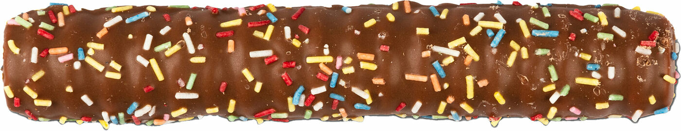 Skum med jordgubbssmak överdragen med ljus nontemp och fruktströssel.