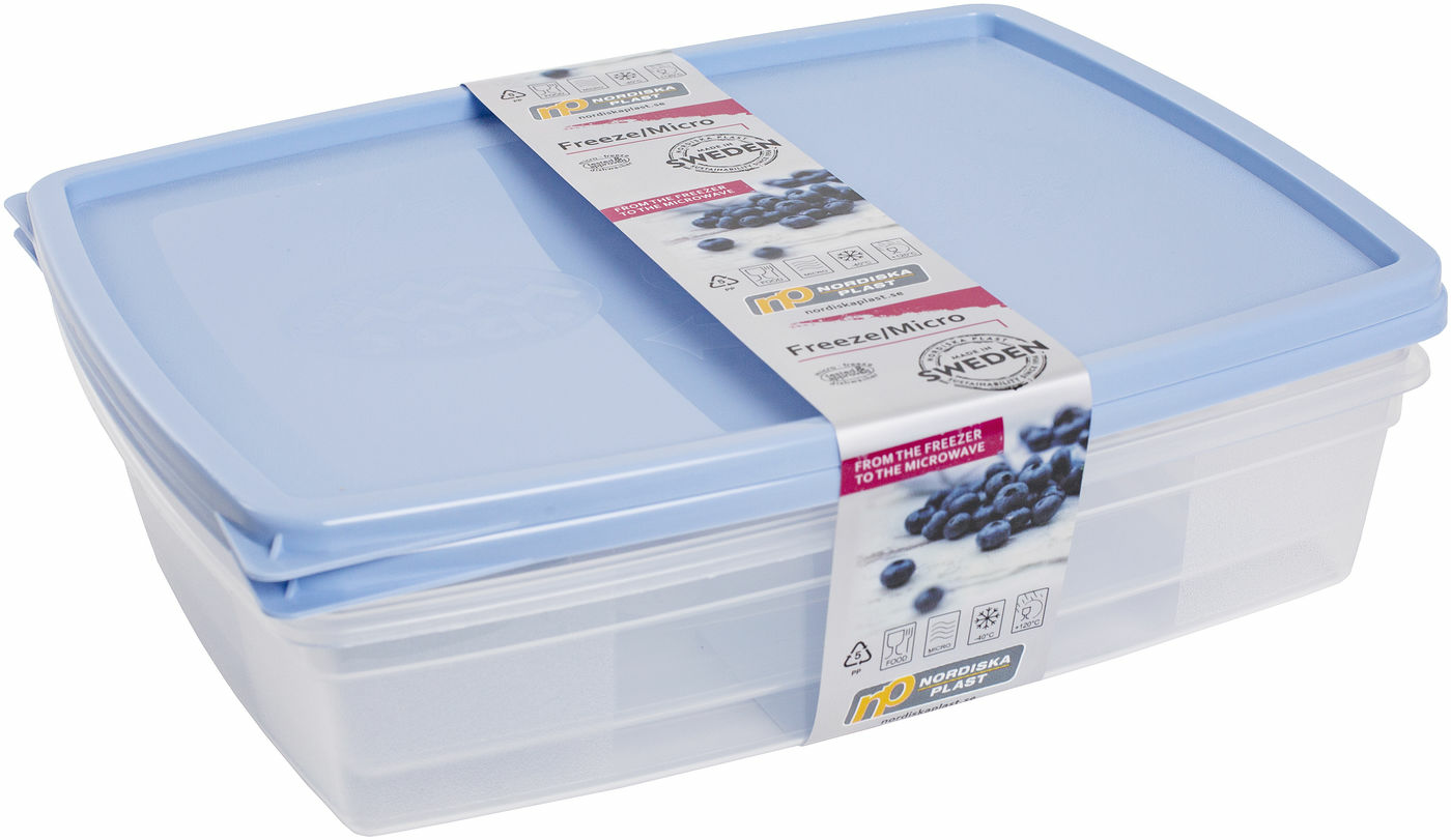 Praktisk och klassisk förvaringsserie i transparent Poly- propenplast, 2-pack. Enkel att använda med ett mjukt lock som är lätt att öppna. Burkarna tål även att köras i Mikrovågsugn även om de tas direkt från frysen. Det transparenta materialet gör det enkelt att se vad som är inuti. Lock och burkar staplas enkelt vid förvaring i köksskåp. Livsmedelsgodkänd, klarar -40°C till +120°C.