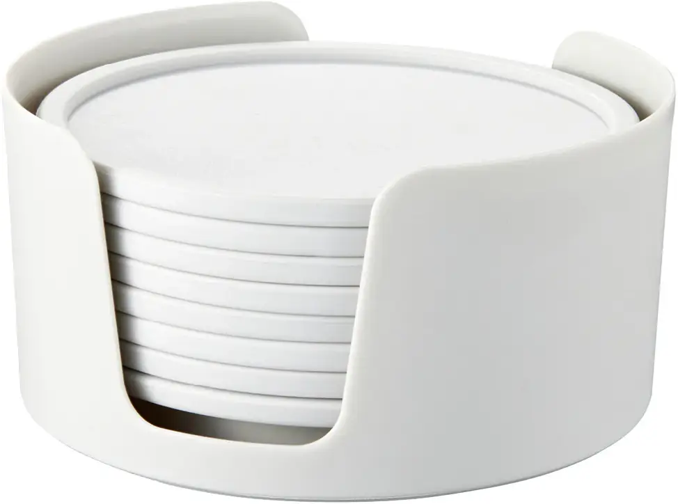 Ginny Glasunderlägg i grå passar perfekt för såväl köket och vardagsrummet som baren. Skydda bordet med dessa fina underlägg med silikonkant. Har dessutom en smidig plasthållare för förvaring.