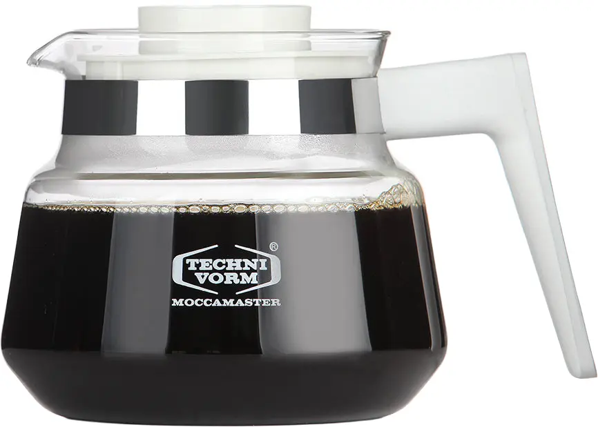 Denna originalglaskanna från Moccamaster levereras med vitt handtag.