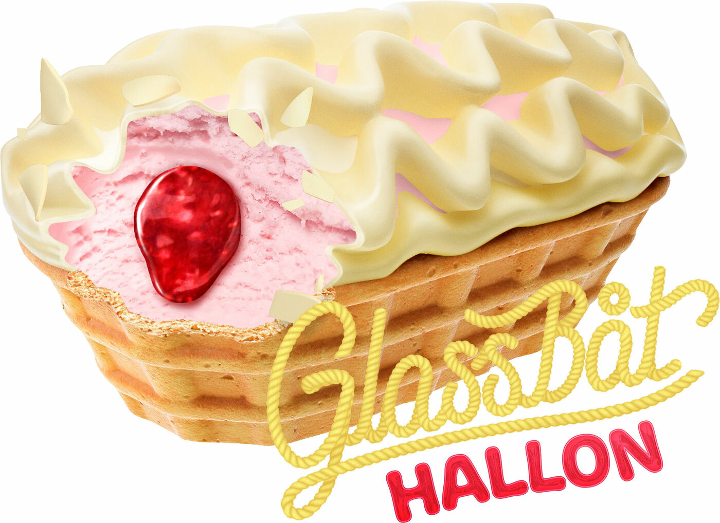 Len hallonglass gjord på svensk färsk grädde med frisk hallonsylt och dopp med vit chokladsmak i båtformat rån. En glass för alla Glassbåts-fans! Alltid tillverkad i Slöinge, Halland. Vårt familjeföretag ligger i Slöinge, en naturskön del av södra Halland. Det är här våra kor betar. Det är här vi utvecklar och tillverkar vår glass. Det är här vår själ och historia finns. Alltid med smak och njutning i fokus. I vårt glassmejeri utvecklar och tillverkar vi vår glass med färsk grädde från halländska gårdar, bl a vår egen Berte Gård. Vi använder företrädesvis närproducerade svenska råvaror av högsta kvalité. All vår glass är helt fri från palmolja. Det är med kärlek för hantverket och omtanke om djur och natur som vi tillverkar all vår gräddglass i Sverige.