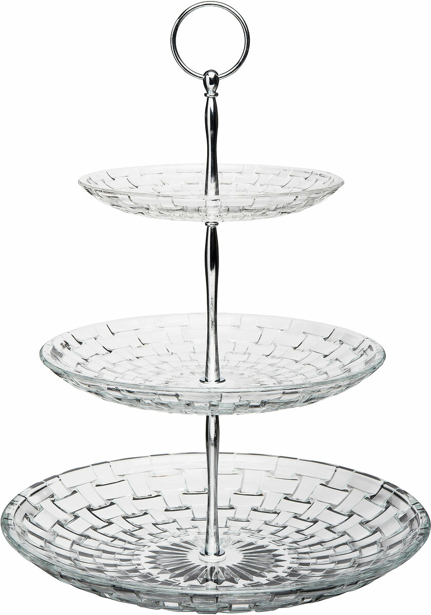 Låt kakfatet Glitter glänsa på fikabordet när det vankas kalas och festligheter. Detta vackra kakfat i tre våningar för tankarna till lyx och elegans. Handtaget gör att du enkelt kan bära fram dina bakelser och tilltugg.