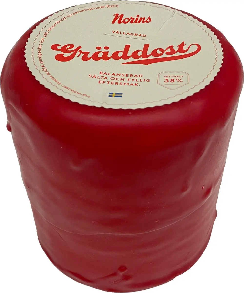 Från Glada Bondens mejeri i Boxholm kommer denna välsmakande gräddost som är lagrad minst 24 månader. Mycket smak och härlig sälta och framförallt en prydnad på julbordet med den röda färgen.