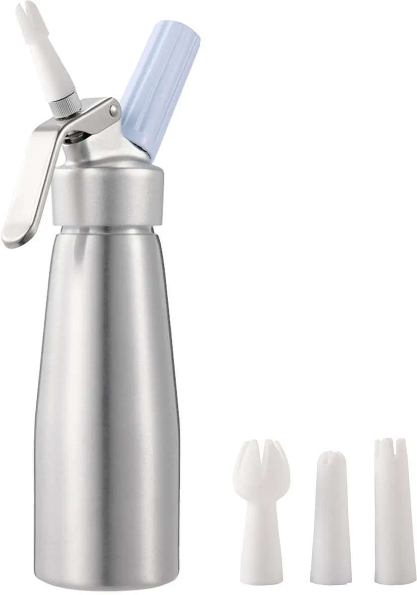 Skapa perfekta vispade gräddtoppningar och mousser enkelt och snabbt med denna gräddsifon som rymmer 0,5 liter. Perfekt för allt från desserter till kaffedrycker, såser och dekorativa toppingar. Med en smidig och robust konstruktion är den lätt att använda och ger professionella resultat varje gång. Gräddsifonen används tillsammans med gräddpatroner fyllda ned N²O (ingår ej, säljs separat) som skapar en jämn och luftig konsistens. Ett mångsidigt verktyg för både hemmakockar och professionella användare.