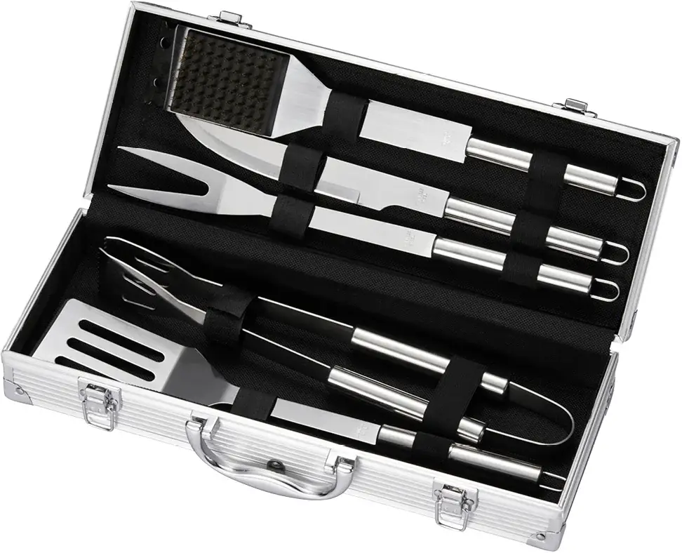 Fint BBQ grillset i fem delar med allt som behövs för att lyckas vid grillen, förpackat i en läcker box. Grillsetet utgör den perfekta verktygslådan för alla grillmästare.