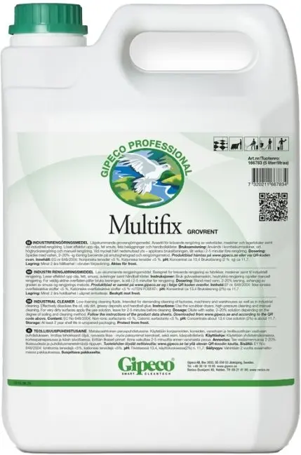 Högeffektivt lågskummande grovrengöringsmedel, tensidbaserat utan kolväten. Avsedd för krävande rengöring av sporthallsgolv, industrigolv, butiksgolv, lagerlokaler och verkstadslokaler. Har ett brett användningsområde och är speciellt utformat för att snabbt tränga igenom och effektivt lösa upp handbollsklister, fet smuts och feta beläggningar innehållande olja, fett, sot etc. Användes i kombiskurmaskiner, vid högtrycksrengöring och manuell rengöring.