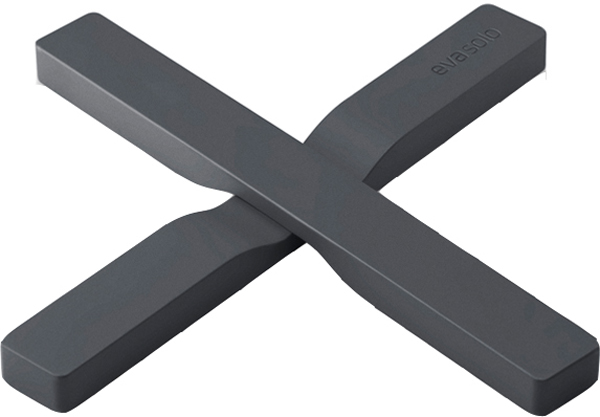 Grytunderlägget kan läggas som ett kryss under grytor och mindre fat, och delas i två under större fat eller exempelvis långpannor. De inbyggda magneterna gör att grytunderlägget följer med grytan runt på bordet, och efter användning tar underlägget minimalt med plats i lådan.