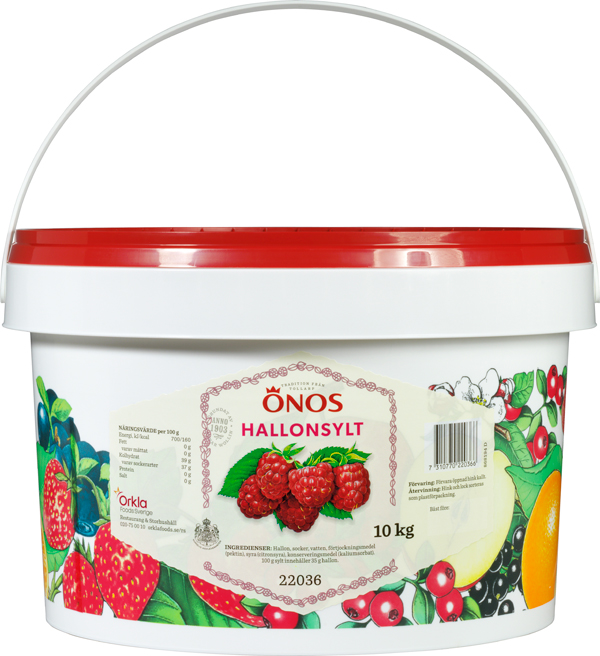 Hallonsylt med söta hallon ger den härligt friska smaken du kan njuta av. Genom att alltid använda de bästa råvarorna kan vi stolt säga att vi vet hur kvalitet ska smaka. Tillagad i Tollarp i Skåne. 10 kg.