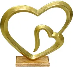 Helia Hjärta i guld är en fin hjärtformad inredningsdetalj på träfot som sprider kärlek i hemmet. Helia består av ett större och ett mindre hjärta. Dekorera hemmet med Helia Hjärta eller ge bort prydnaden i present till någon du tycker om.