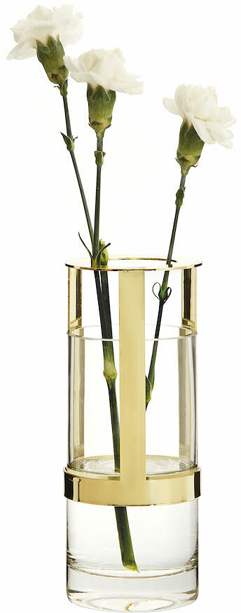 Hold är en unik, prisbelönad, vas designad av Pascal Charmolu. Vasen består av munblåst glas och ett metallhölje som går att justera i höjdled. Genom att enkelt flytta metallhållaren upp eller ner anpassar man höjden till allt från mindre buketter till höga snittblommor. Vasen är dessutom lika tjusig som ljuslykta. Finns i tre olika storlekar, varav detta är den minsta.