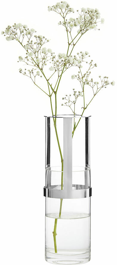 Hold är en unik, prisbelönad, vas designad av Pascal Charmolu. Vasen består av munblåst glas och ett metallhölje som går att justera i höjdled. Genom att enkelt flytta metallhållaren upp eller ner anpassar man höjden till allt från mindre buketter till höga snittblommor. Vasen är dessutom lika tjusig som ljuslykta. Finns i tre olika storlekar, varav detta är den minsta.