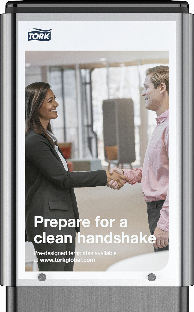 Informationsfönstret för Tork Hygienställ är ett kommunikationsverktyg som uppmuntrar till att förbättra hygienen på kontor och andra publika platser. Ett perfekt sätt att påminna om vikten av god handhygien och andra viktiga meddelanden.