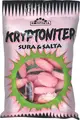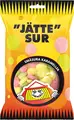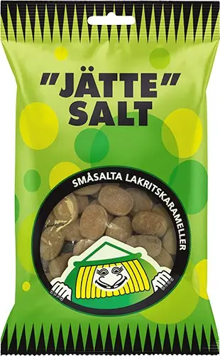 Salta hårda lakritskarameller. Största andelen av Konfektas godis produceras i Sverige. Påsarna görs av polypropen och är återvinningsbara, de sorteras som mjukplast.
