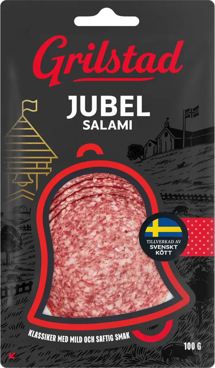 Jubelsalami är en salami med välbalanserad smak och arom, och som bland annat innehåller lite vitlök. Barn brukar älska Jubelsalami!