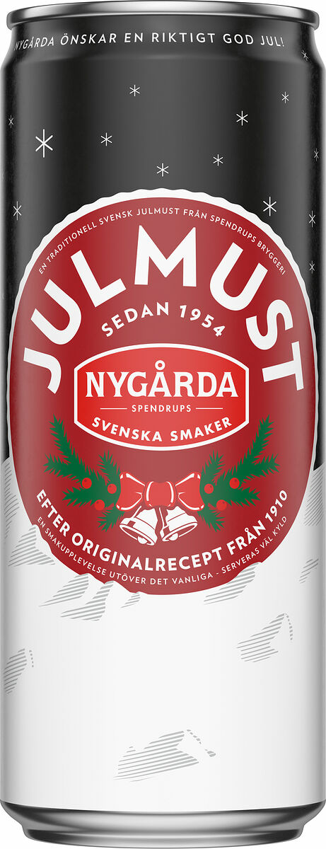 Nygårdas Julmust baserar sig på ett originalrecept från 1910 och smakar som en must ska smaka. Med en perfekt balans mellan sötma, juliga kryddor och härligt skum är vår must älskad av både stora och små. Smak: Söt traditionell must med fint skum och fylliga komplexa och runda smaker.