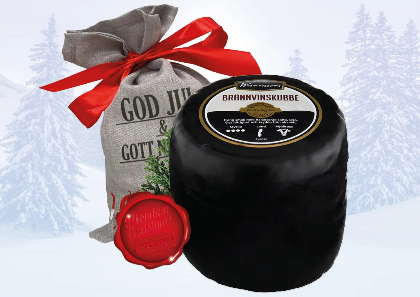 Kvibille Calvados cheddarost presentpackas med pappersull och levereras i vår lilla tomtelåda!