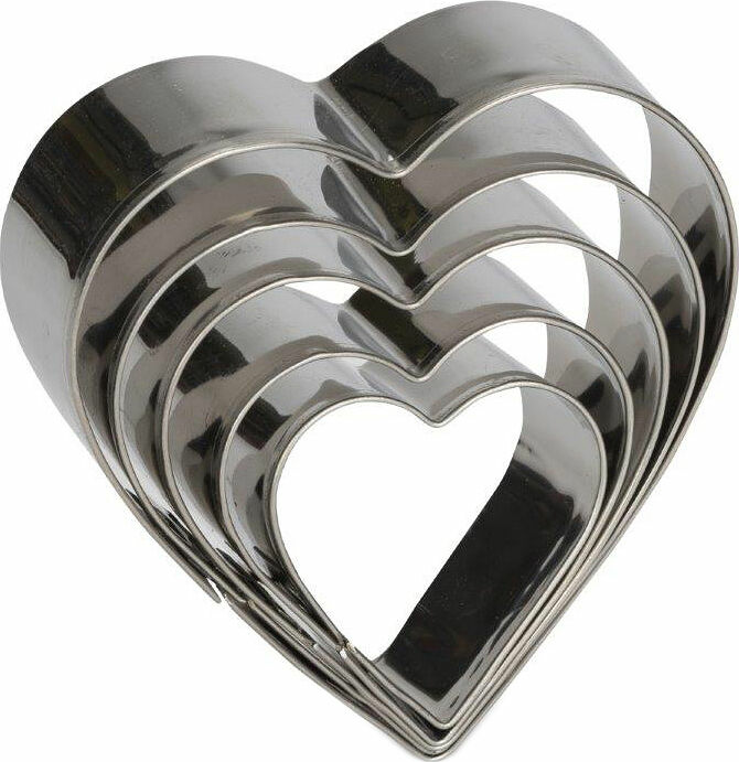 Kakmåttset hjärta 5 st. stål - 4/4,5/6/6,8/8 cm