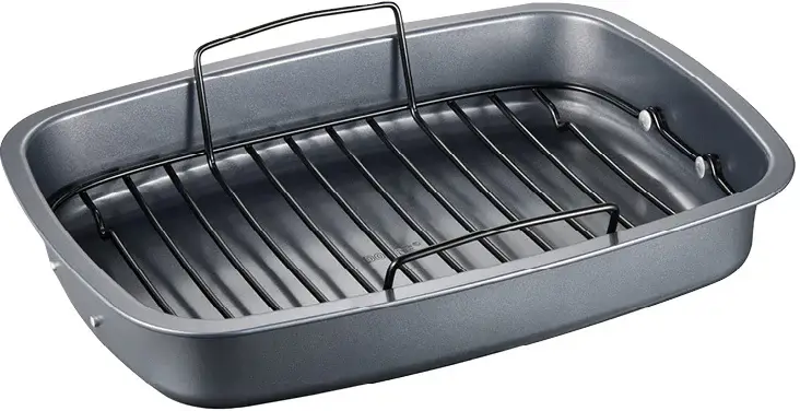 Maximera din bakning och rostning med vår långpanna med galler! Perfekt för krispiga bakverk och saftigt kött. Det medföljande gallret främjar luftcirkulation för jämn tillagning och enkelt fettavflöde. Robust och lätt att rengöra, denna långpanna är en oumbärlig hjälpreda i köket för alla dina matlagningsbehov!