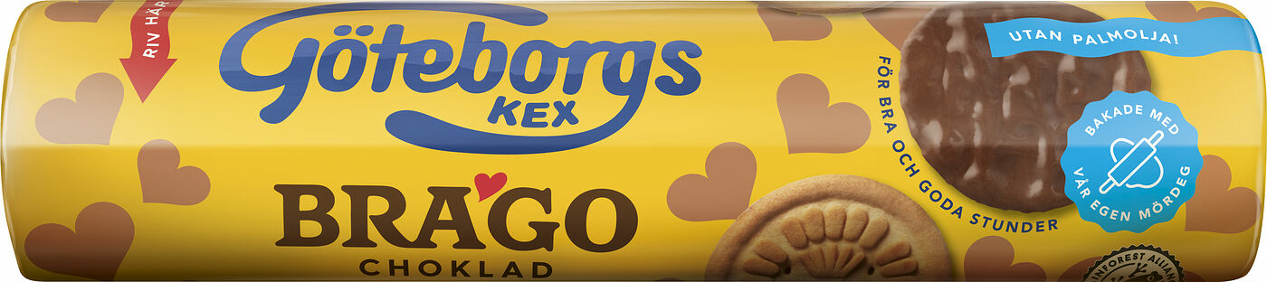 Ingredienser: VETEMJÖL/HVEDEMEL, mjölkchoklad 23 % (socker, kakaosmör, MJÖLKPULVER/MÆLKPULVER, kakaomassa, emulgeringsmedel (SOJALECITIN), arom), socker, vegetabiliskt olja (raps, shea, kokos), VETESTÄRKELSE/HVEDESTIVELSE, sirap, bakpulver/hævemiddel (hjorthornssalt E503, natriumbikarbonat), salt, KORNMALT/BYGMALT, emulgeringsmedel (SOJALECITIN), aromer.