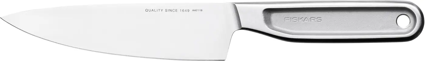 Fiskars All Steel liten kockkniv är tillverkad av rent, rostfritt stål av hög kvalitet för suverän prestanda och lång livslängd