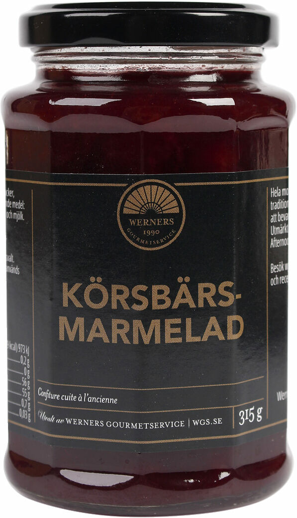 Hela morellokörsbär och rörsocker kokas traditionsenligt i kopparkittel i små volymer för att bevara bären så hela som möjligt. Utmärkt till Brieost, patéer eller varför inte till Afternoon tea.