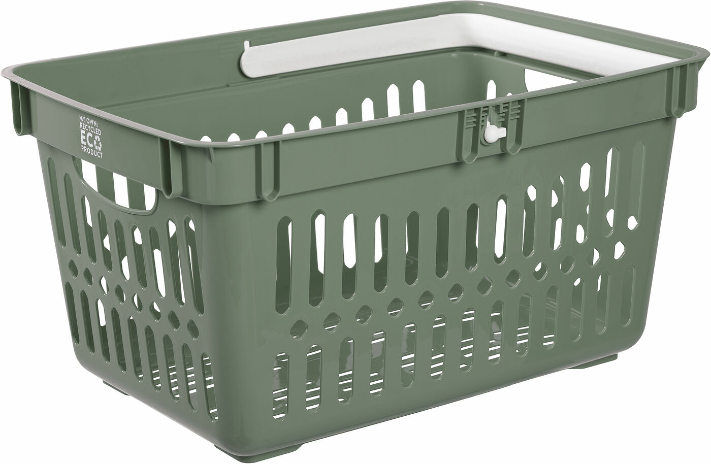 Praktiskt och ergonomisk förvaringskorg med dubbla integrerade handtag och fint tryck på kortsidorna.