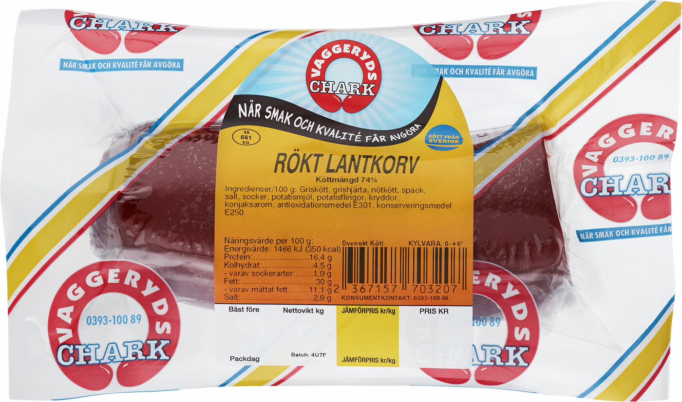 Griskött, Grishjärta, Nötkött, Späck, Koksalt, Socker, Potatismjöl, Potatisflingor, Kryddor, Konjaksarom, Askorbat, (Antioxidationsmedel E301), Nitrit (Konserveringsmedel E250)