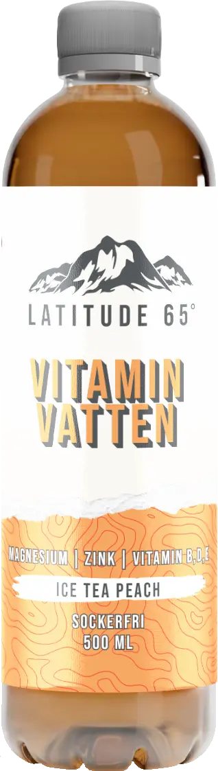 Svensktillverkad vitamindryck från Latitude 65, med en frisk smak av ICE TEA PEACH.