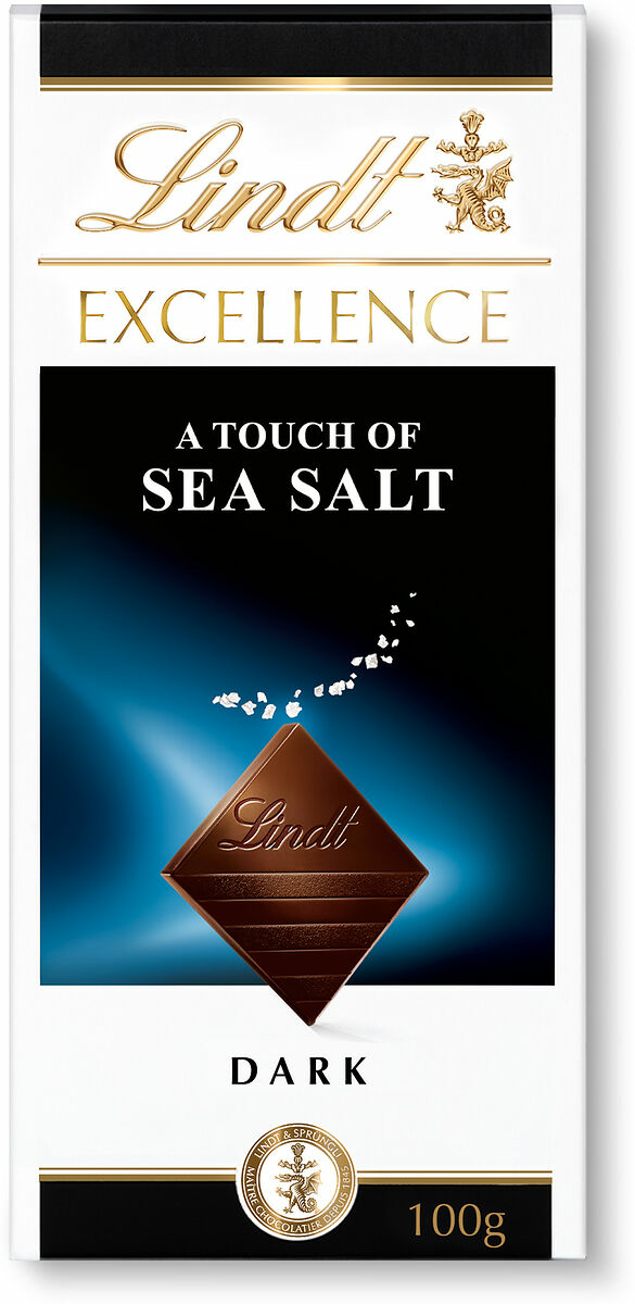 Lindt EXCELLENCE Sea Salt är en chokladkaka av mörk choklad, tunn och intensiv med de finaste ingredienser skapad av Lindts Chokladmästare. Den perfekta blandningen av len mörk choklad med hög kakaohalt i kombination med handskördade flingor av havssaltet Fleur de sel, en sann smaksensation för alla sinnen. Hållbart odlade kakaobönor genom Lindt & Sprüngli Farming Program - i samarbete med jordbrukarna och deras lokalsamhällen.