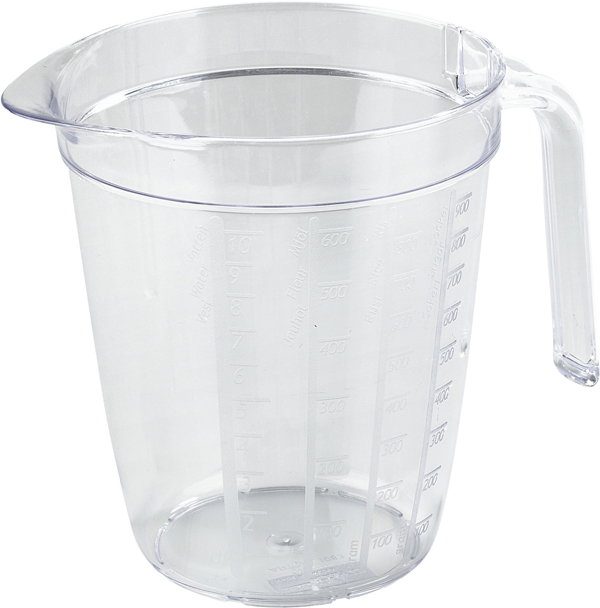 Litermått i glasklar SAN-plast. Har graderad dl-skala, samt gram-skala för mjöl, ris och socker. Livsmedelsgodkänd och klarar maskindisk.