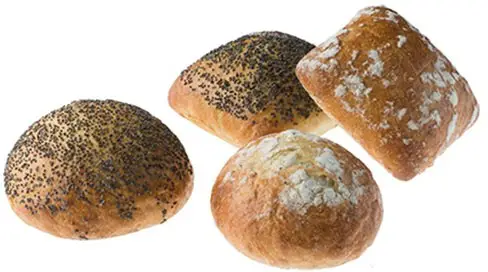Ljusa surdegsfrallor från Dafgårds som med sin storlek på 50 gram är lagom stora till det mesta! Mixkartongen innehåller fyra olika sorters bröd. Två runda och två fyrkantiga, toppade antingen med mjöl eller med