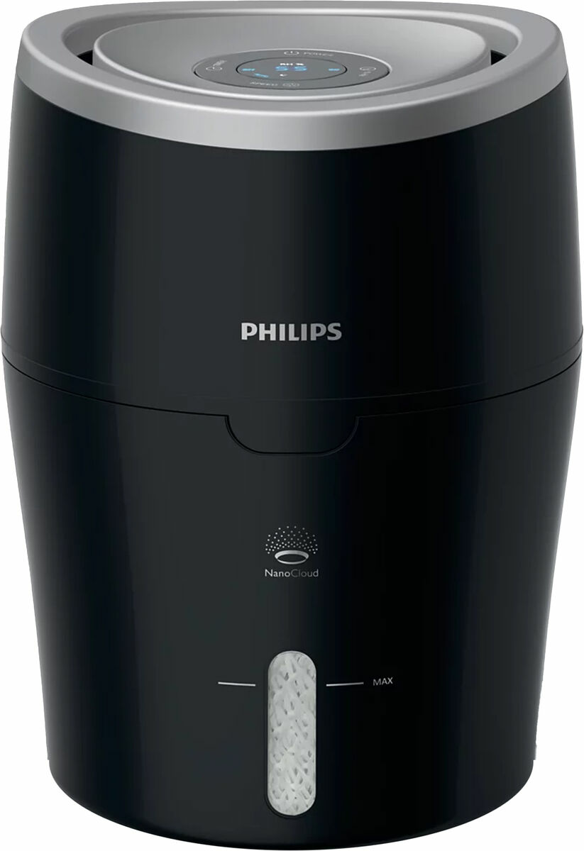 Philips Luftfuktare i serie 2000 säkerställer att inomhusluften håller en optimal luftfuktighet (40-60 %). Vid optimal luftfuktighet minskas spridningen av bakterier och virus, det bildas mindre damm och man minskar risken att få torr hud och torra ögon. Med förångningstekniken NanoCloud sprids 99 % färre bakterier* jämfört med ledande ultraljudsluftfuktare. Dessutom förhindras vattenfläckar och vitt damm.